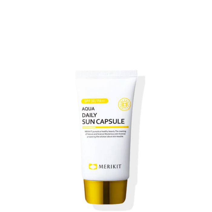 Kapsulë mbrojtëse diellore me formulë ujore Merikit për mbrojtje efektive nga rrezet UVA dhe UVB në format inovativ. Çdo kapsulë individuale përmban sasi të saktë produkti të freskët dhe pa konservues të shtuar, duke garantuar efektivitetin maksimal të mbrojtjes. Formula e lehtë thithet shpejt pa lënë mbetje të bardha ose yndyrore, duke siguruar mbrojtje të plotë dhe hidratim të vazhdueshëm. E përshtatshme për të gjitha llojet e lëkurës dhe ideal për mbajtje gjatë udhëtimit.
