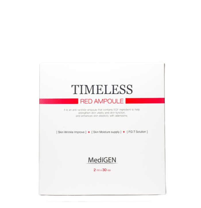 Timeless Red Ampoule është një kurë rigjeneruese 30-ditore e krijuar për të rikthyer vitalitetin, densitetin dhe një shkëlqim të butë, të ngrohtë në lëkurë. Formula e saj është e pasuruar me një përzierje të avancuar antioksidantësh dhe ekstraktesh bimore me ngjyrë natyrale të kuqe – të njohura për aftësinë e tyre për të stimuluar rinovimin qelizor, për të reduktuar dëmtimet nga stresi oksidativ dhe për të përforcuar barrierën mbrojtëse të lëkurës.